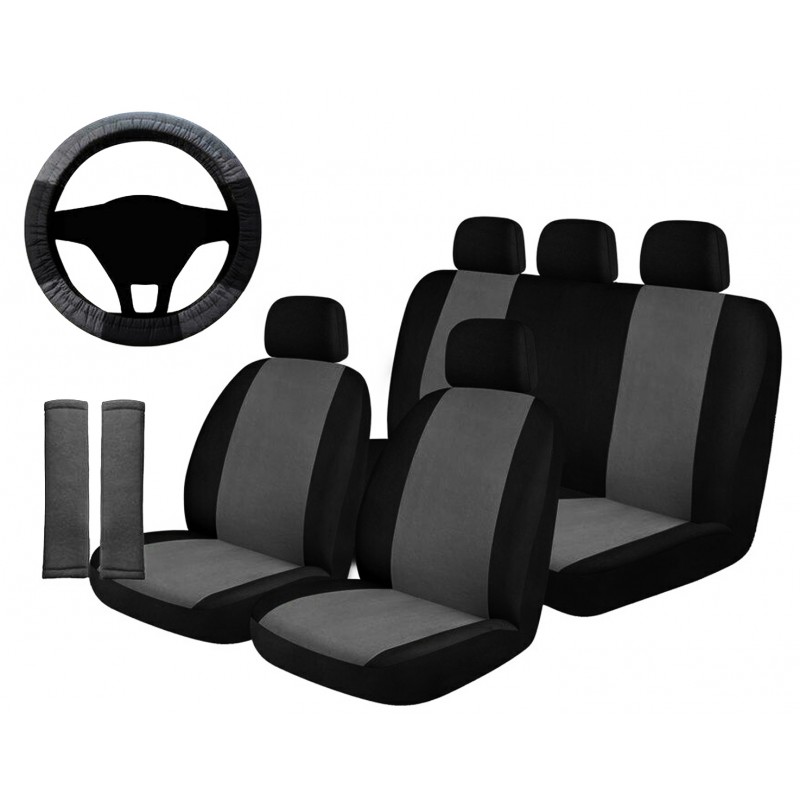Coprisedili universali per auto/SUV con sedile anteriore con schienale tradizionale (e poggiatesta separato regolabile) e posteriore a panca.