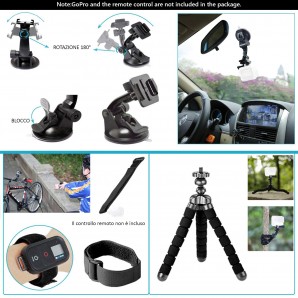 Per fotocamere sportive, è necessario montare un adattatore di conversione su questi accessori per utilizzarli.(Però nel kit NON c'è l'adattatore di conversione)