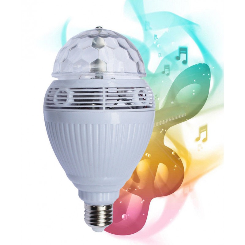 Bellissima ed innovativa lampada a tecnologia bluetooth a LED, che regalerà all'ambiente in cui verrà installata un'effetto magico e permetterà di ascoltare la tua musica preferita collegandolo con il bluetooth. L'installazione è semplice e veloce poichè basterà inserire il prodotto in un comunissimo portalampade. L'effetto luminoso colorato non è statico, bensì cambierà continuamente attraverso la rotazione della parte anteriore che muoverà nel vero senso della parola le luci multicolor. Un articolo indicato per bar, pub, sale da ballo, locali ma anche per la propria abitazioni in occasioni di feste o simili. Non da meno l'utilizzo in attività commerciali o per vetrine durante il periodo natalizio. L'attacco di questa lampada è di tipo E27, ed avendo emissione di luce a LED, disporrete di un risparmio energetico dell 80% circa rispetto alle classiche lampade alogene ma soprattutto di una maggiore longevità.
