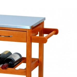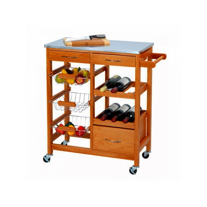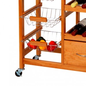 Hai bisogno di un mobile aggiuntivo per la tua cucina che non occupi molto spazio? Abbiamo proprio quello di cui hai bisogno: il fantastico carrellino in legno da cucina! E' un carrellino da cucina resistente, practico, innovativo ed elegante che puoi utilizzare per tenere i cibi e le bibite ben organizzate. E' dotato di manico e rotelline per essere facilmente spostato. Con 3 cassetti con manico, 3 cesti metallici e due ripiani porta bottiglie. La superficie è coperta da una lastra in acciaio inox. Semplice da assemblare (le viti sono incluse). Dimensioni: 66 x 84 x 36 cm c.ca.