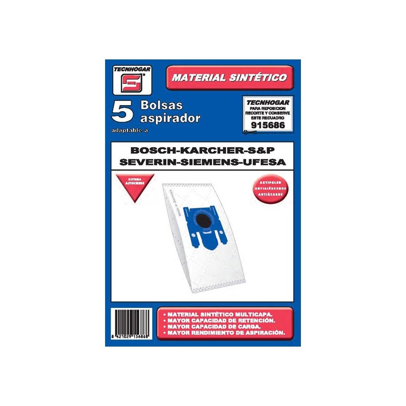 Sacchetto di Ricambio per Aspirapolvere Tecnhogar 915686 (5 uds)