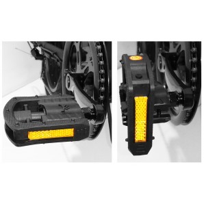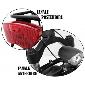 Dotata di ciclocomputer LCD, cambio professionale Shimano (Tourney TZ) a 6 velocità, faretto anteriore e posteriore, portapacchi posteriore, batteria Li-Ion estraibile, morbida e comoda sella confort.
