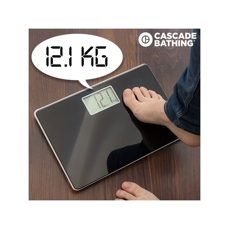 Ancora non possiedi la bilancia digitale per bagno Speakg a casa tua? Non aspettare un secondo in più - acquista ora questa comoda e moderna bilancia pesapersone con sistema vocale integrato! Una bilancia in vetro temperato con base in plastica resistente della gamma Cascade Bathinge. Funziona a batterie (2 x AAA, incluso). Dimensioni: circa 31 x 2 x 21 cm.
