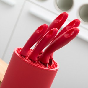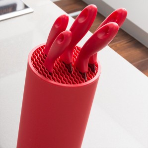Desideri rinnovare i tuoi utensili da cucina? Decora la cucina con prodotti di design, come il set di coltelli con supporto Cilindrico (6 pezzi). Il set di coltelli in acciaio inox dispone di feritoie per proteggere le lame del coltello. Include: 1 supporto (10 x 22,5 x 10 cm circa), 1 coltello seghettato di 32 cm circa, 1 coltello di 31 cm circa, 1 coltello di 27 cm circa, 1 coltello di 22 cm circa e 1 coltello di 18,5 cm circa (le lunghezze sono comprensive di manico).