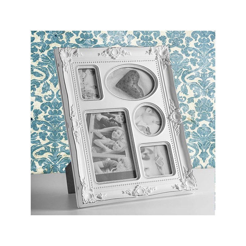 Vuoi avere sempre a vista le fotografie per te più importanti? Il portafotografie Antique Used Look (5foto) è quello che stai cercando. Questa bella cornice decorerà qualsiasi parete della tua casa (in orizzontale) o la scrivania del tuo ufficio, il tavolo del salotto ecc., grazie al suo supporto nella parte posteriore. Dispone di spazi per 5 fotografie, 1 orizzontale 10 x 15 cm e 4 spazi per immagini di differenti dimensioni e forme (ovali, tonde, rettangolari e quadrate). Realizzato in plastica. Misure approssimative: 32,5 x 26 x 3 cm.