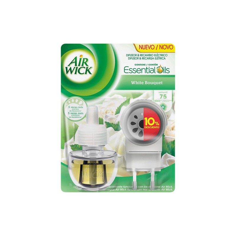 Vuoi goderti la freschezza del campo nella tua casa? Compra il diffusore elettrico per ambienti con ricambio Air Wick White Bouquet e circondati della delicata fragranza floreale White Bouquet! Il suo leggero aroma ricorda quello dei fiori bianchi appena raccolti. Si collega alla corrente elettrica e rilascia in modo continuo la sua fragranza.