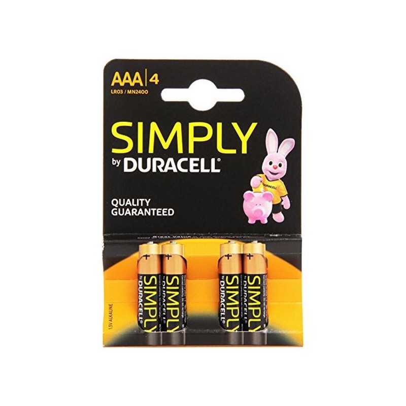 Batterie Alcaline DURACELL Simply DURSIMLR3P4B LR03 AAA 1.5V (4 pcs) al miglior prezzo.Duracell LR03 4-BL Duracell Simply, Alcalino, Cilindrico, 1,5 V, AAA, Nero, Oro, 44,5 mm
