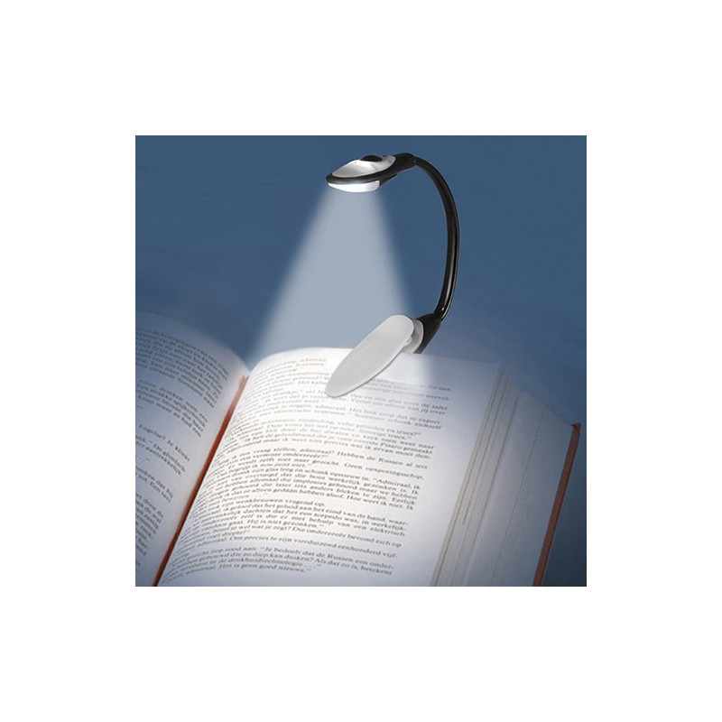 Scoprite la lampada LED da lettura con pinza e potrete leggere con totale chiarezza e comodità senza disturbare nessuno! Prodotta in plastica, con una pinza metallica per attaccarla al libro. LED a luce bianca per non sforzare la vista. Una lampada da lettura molto maneggevole, di grande utilità per leggere in casa, su messi di trasporto, etc. Funziona con batterie a bottone (2 x CR1220, incluse). Misure: circa 15 x 6 x 3 cm.