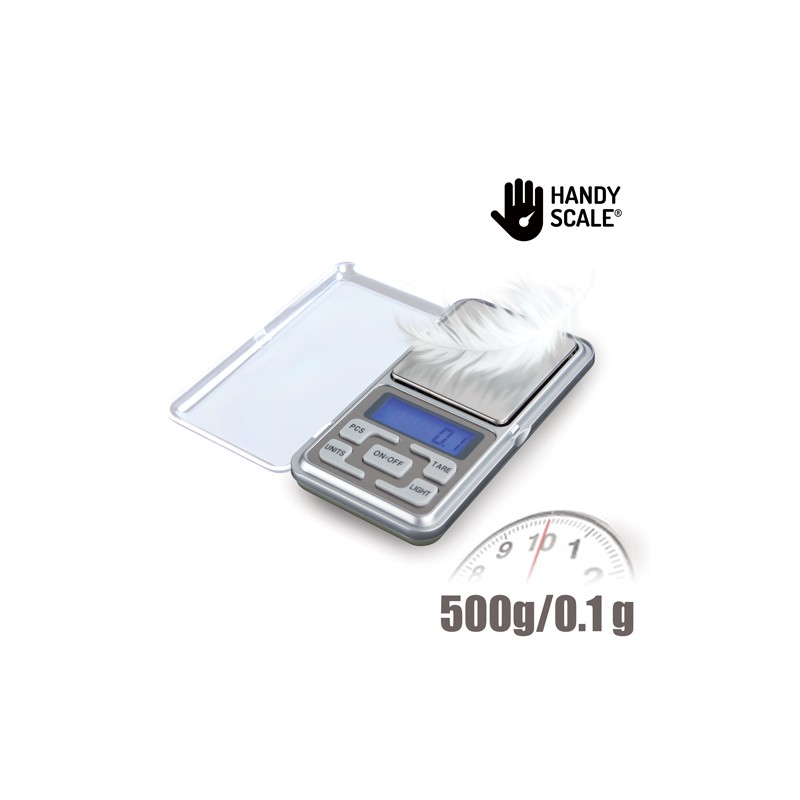 Ora potrai pesare gli oggetti più piccoli con la fantastica bilancia di precisione digitale Handy Scale! Questa bilancia con copertina di protezione in acriclico e una base di acciaio inossidabile è pratica e facile da usare. Fantastica per pesare i gioielli, monete o piccole quantità d'ingredienti per cucinare. Dimensione tascabile. Auto Calibrazione e display LCD retroilluminato. Portata di peso da 0,1 a 500 g (precisione 0,1 g). Misurazione in g, oz, dwt e ct. Funzione tara e di spegnimento automatico dopo 30 secondi. Temperatura di funzione: 10 – 30 ºC. Dimensioni circa: 12 x 6,5 x 2 cm. Funziona a batterie (2 x AAA, inclusa).