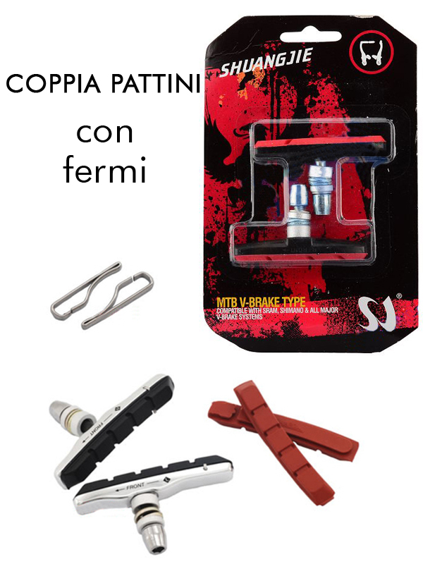 COPPIA FRENI PATTINI BICI BICICLETTA ROSSA NERA V-BRAKE PROFESSIONALI RESISTENTE