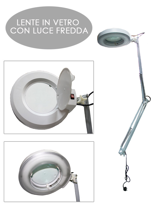 Lampada dotata di lente d'ingrandimento a 8 diottrie con luce.