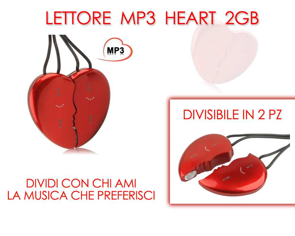 LETTORE MP3 CUORE DIVISIBILE IN 2 PEZZI DA 2GB