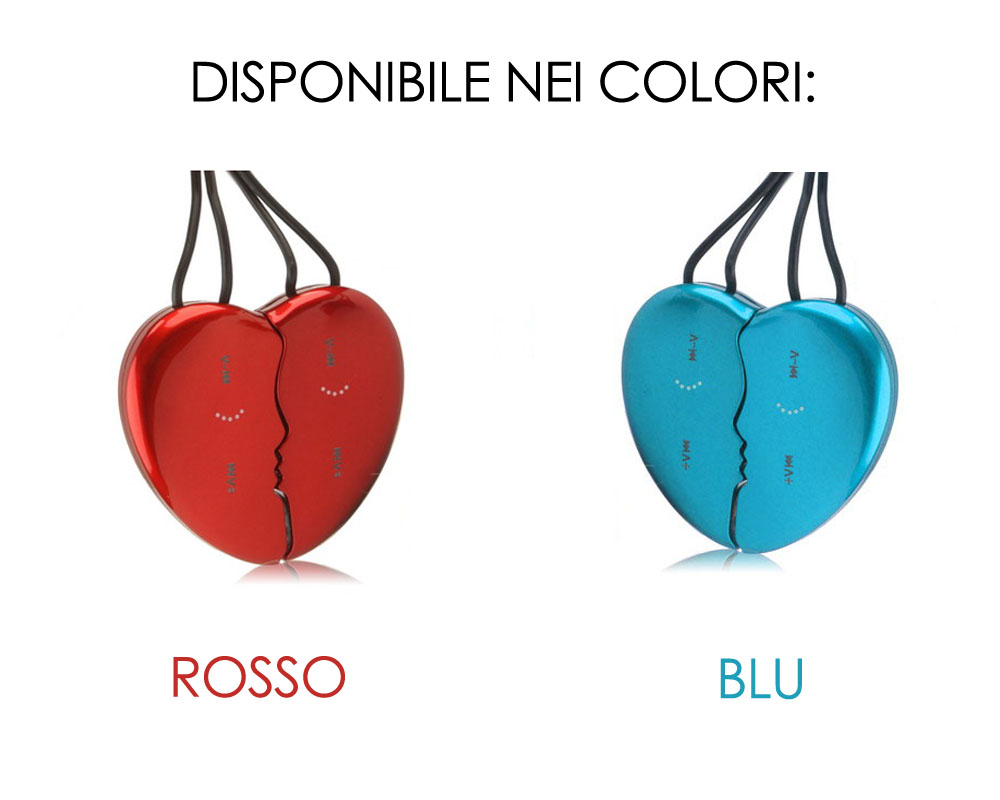 COPPIA LETTORE MP3 CUORE DIVISIBILE IN 2 PEZZI 2GB HEART LOVES COLORE ROSSO O BLU