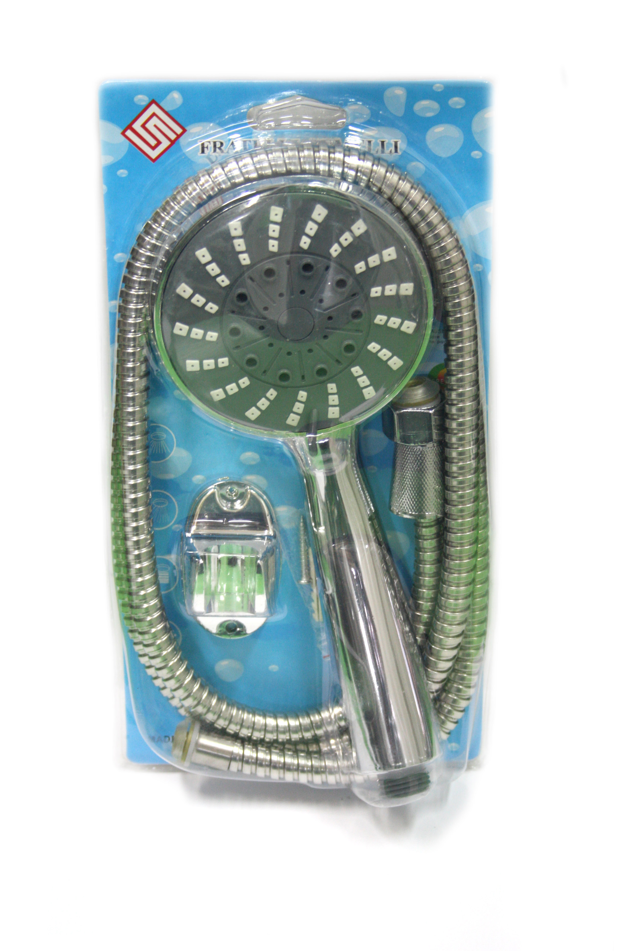 KIT TUBO FLESSIBILE PER DOCCIA 1,5 MT E SOFFIONE TONDO A CASCATA 61 GETTI BAGNO