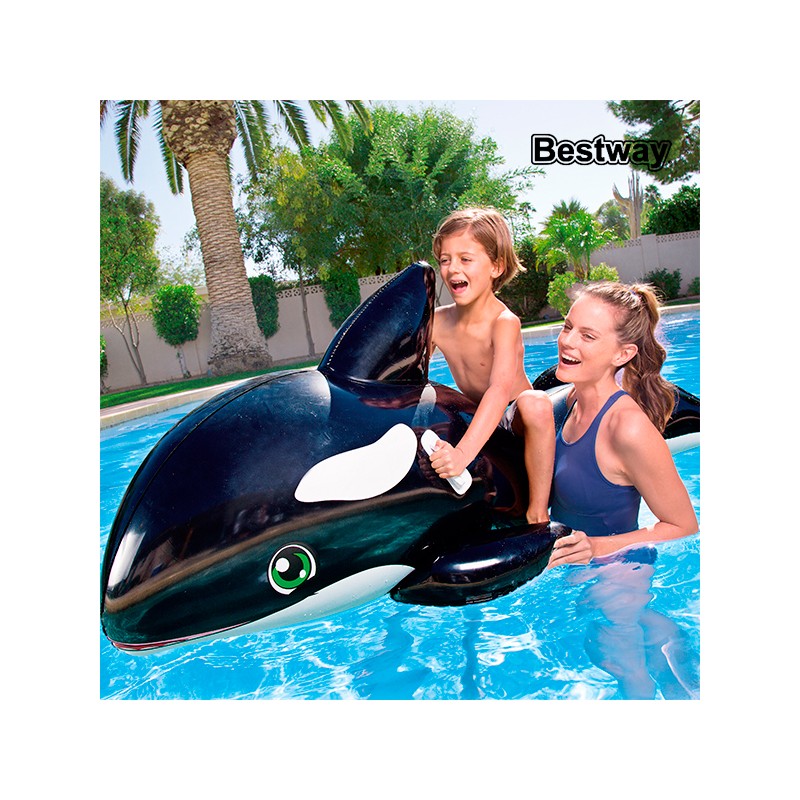 I bambini non si sentiranno più soli in spiaggia e in piscina grazie all'orca gonfiabile! Dispone di 2 manici in plastica e di valvole di sicurezza. Realizzata in PVC resistente. Include toppa di riparazione. Peso massimo supportato: 45 kg circa. Età raccomandata: +3 anni. Dimensioni: 203 x 102 cm circa.