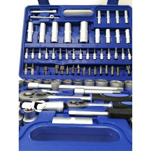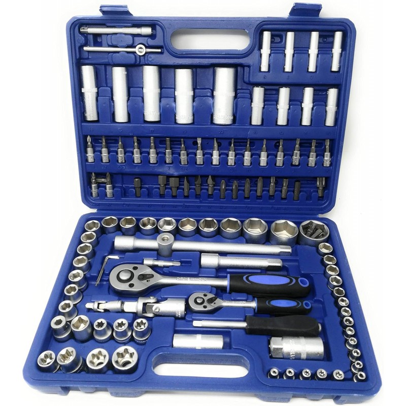 Tianfeng Tools - Valigetta con vasta gamma di 108 pezzi di chiavi bussola ed accessori, azzurro