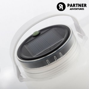 Se stai pensando di fare un viaggio o una escursione, non uscire di casa senza il pratico e comodo contenitore con luce a LED di silicone Partner Adventures! Un recipiente impermeabile e flessibile con manico di plastica staccabile e con coperchio. Di ispone inoltre di 3 LED bianchi sul retro del coperchio in grado di essere attivati con tre diverse modalità grazie all'interruttore on / off (luce bassa intensità fissa, luce ad alta intensità fissa e lampeggiante). Perfetto per trasportare tanti oggetti. Dispone di una porta micro USB ed un pannello solare per ricaricarsi. Sono inclusi un cavo USB e micro USB. Misure circa. (altezza x diametro): 16,5 x 9 cm.