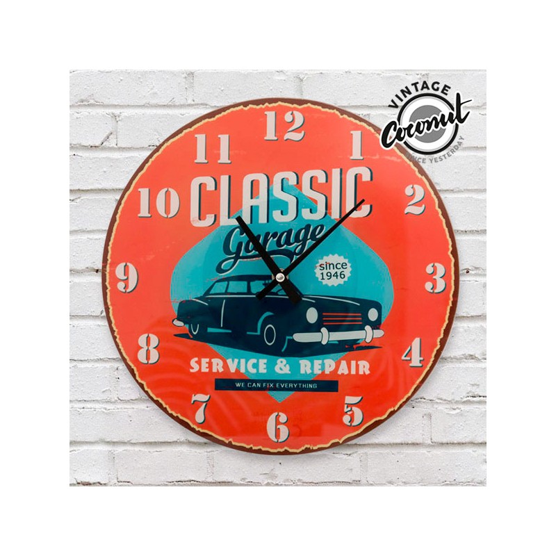 Se non ti sei ancora avvicinato alla moda della decorazione rétro, potresti iniziare adesso con l'orologio da parete Classic Garage! Realizzato in vetro. Diametro circa: 30 cm. Spessore circa: 0,3 cm. Funziona a batterie (1 x AA, non inclusa).