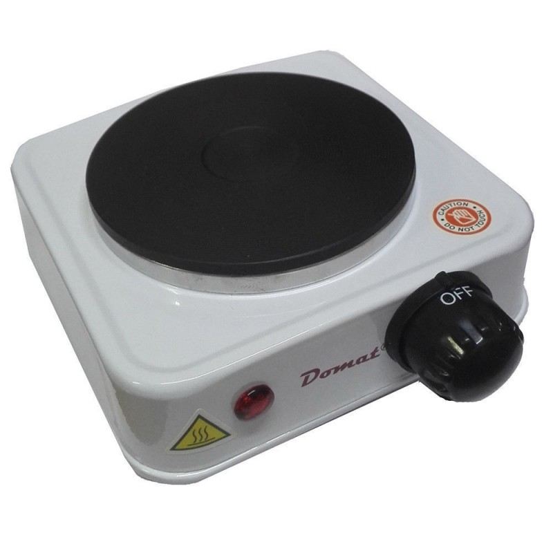 Fornello elettrico Domat DMT-100A con piastra singola regolata dalla manopola posizionata frontalmente.