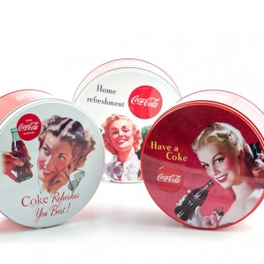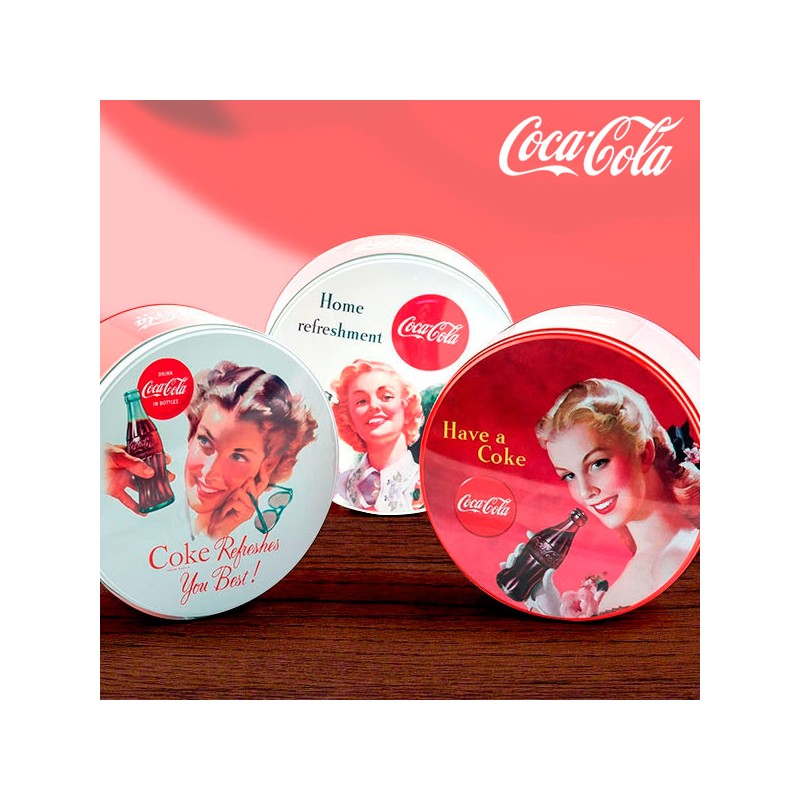 Strizza l'occhio al passato con la scatola metallica vintage rotonda Coca-Cola! Questa scatola decorativa in stile retrò è molto utile per conservare oggetti, spezie, erbe, biscotti, ecc. Si chiude a pressione, come le tradizionali scatole in latta. Dimensioni (diametro x altezza): circa 19,5 x 8,5 cm. Differenti decori disponibili, inviati casualmente secondo la disponibilità.