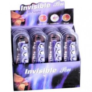 Acquistare Penna Inchiostro Invisibile al miglior prezzo. Adesso puoi acquistare a prezzo da grossista questa penna che ti permetterà di scrivere messaggi invisibili decifrabili soltanto utilizzando la luce ultravioletta incorporata nel suo tappo. Perfetto come regalo per bambini, o per fare scherzi agli amici, dato che quando scrivi non si vede niente, ma in molte discoteche dispongono di luce ultravioletta che renderà visibile il messaggio. Ci sono poi alcuni clienti che la utilizzano per fare appunti agli esami, ma noi non te lo consigliamo! Non farti sfuggire quest'offerta e portati via questa Penna Penna a Inchiostro Invisibile con luce ultravioletta. Siamo sicuri che potrà esserti utile. Espositore Punto Vendita: 24 pz.