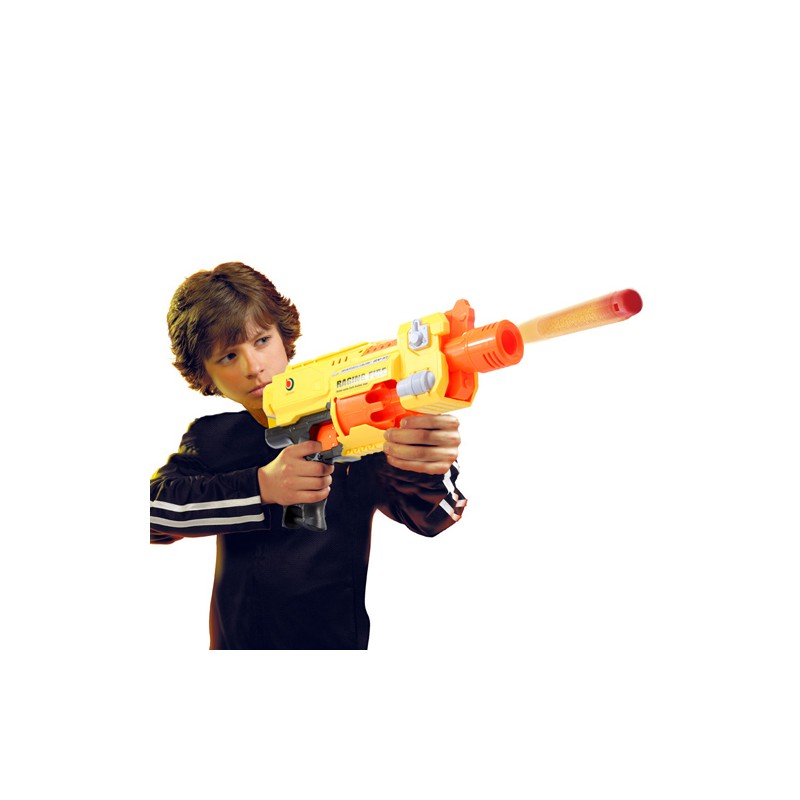 Comincia la battaglia! Prendi bene la mira e spara con questa favolosa mitragliatrice giocattolo lanciapalle! È molto divertente. Lancia inoffensive palle di gommapiuma. Il regalo per bambini che tutti attendevano! Fabbricata in plastica. Misure approssimative: 45 x 22 x 8 cm. Include 20 palle di gommapiuma (6,5 cm di lunghezza x 1 cm di diametro circa). Funziona a batterie (3 x AA, non incluse).