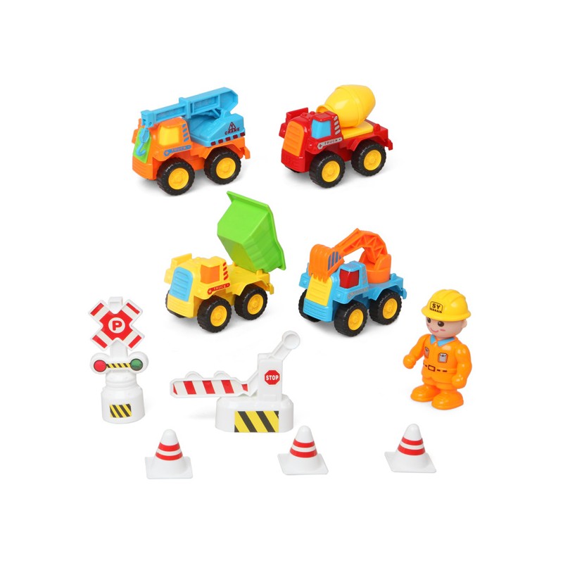 Incita i più piccoli di casa ad immaginare mentre giocano e a creare le loro storie con i veicoli per la costruzione con accessori.4 veicoli (betoniera, gru, scavatrice e camion...