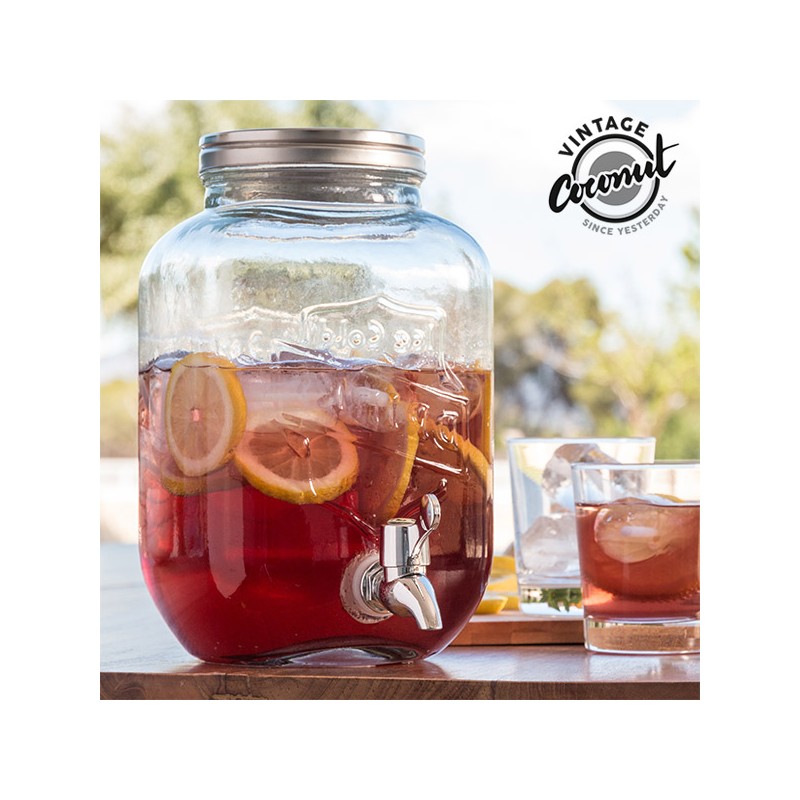 Goditi i tuoi drink preferiti con il dispenser di bevande Vintage Coconut! Si tratta di un recipiente di vetro con tappo metallico, dotato di un rubinetto grazie al quale servire le bevande al suo interno.