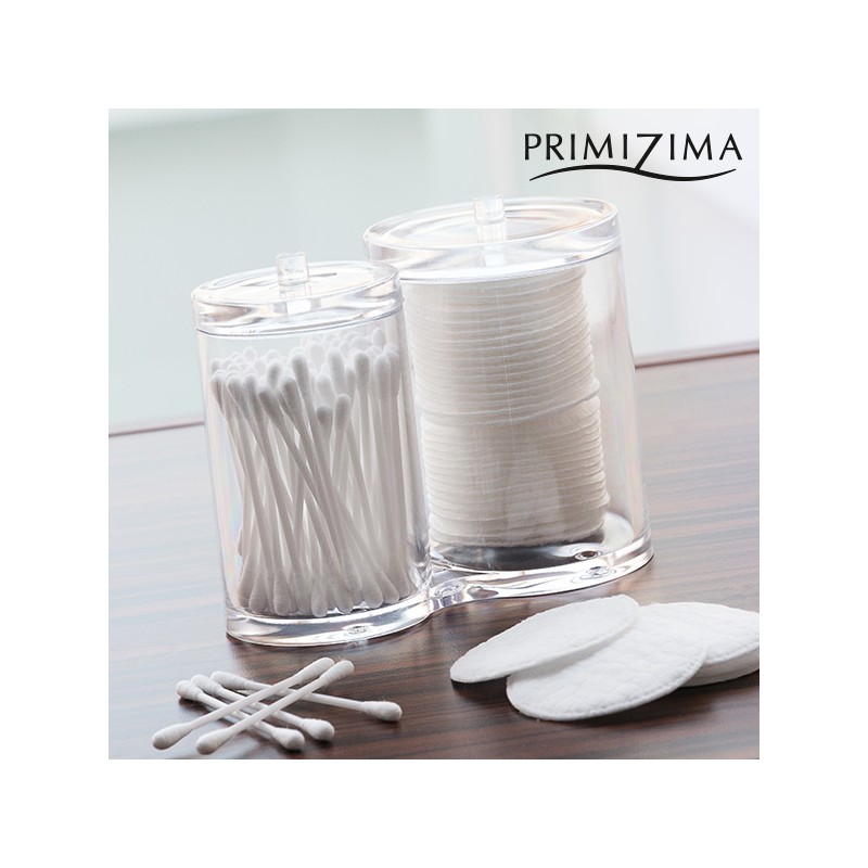 Il contenitore per cotton fioc e dischetti di cotone Primizima non può mancare nel tuo bagno! Due recipienti indipendenti, con coperchio e uniti tra di loro, molto comodi e pratici per conservare e tenere in ordine i cotton fioc e i dischetti di cotone.