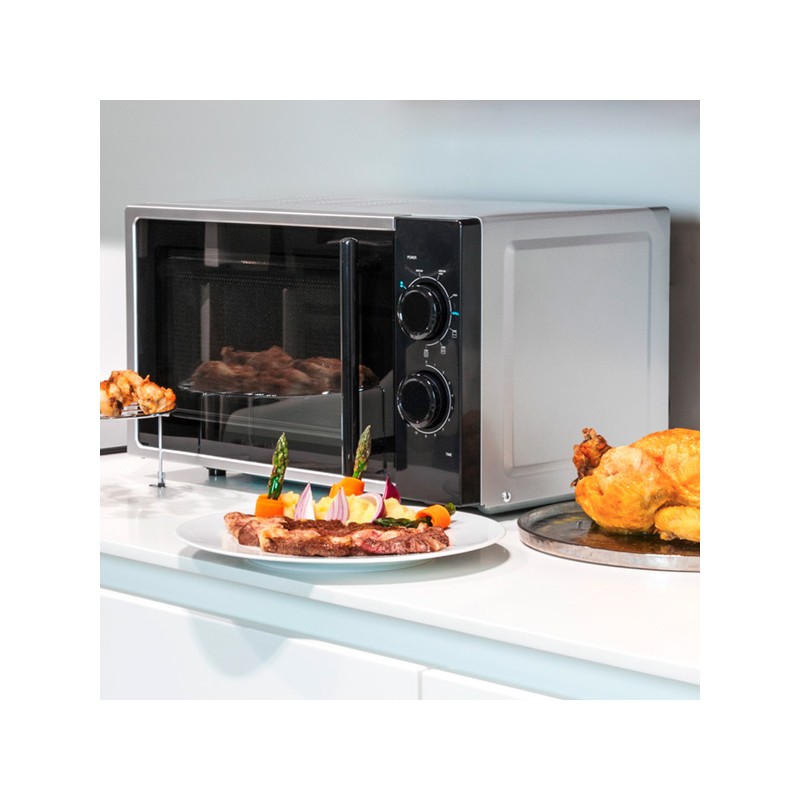Il microonde con grill Silver 1363 non può mancare nella tua cucina!4 livelli di potenzaFunzione grill indipendenteGrill al quarzo con griglia protettrice (900 W)3 modalità combinate...