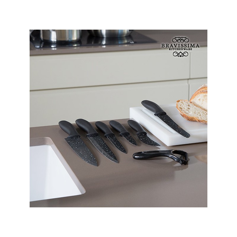 Se sei alla ricerca di coltelli di qualità per la tua cucina, ti presentiamo i coltelli professionali in pietra Premium Black Bravissima Kitchen (7 pezzi)!