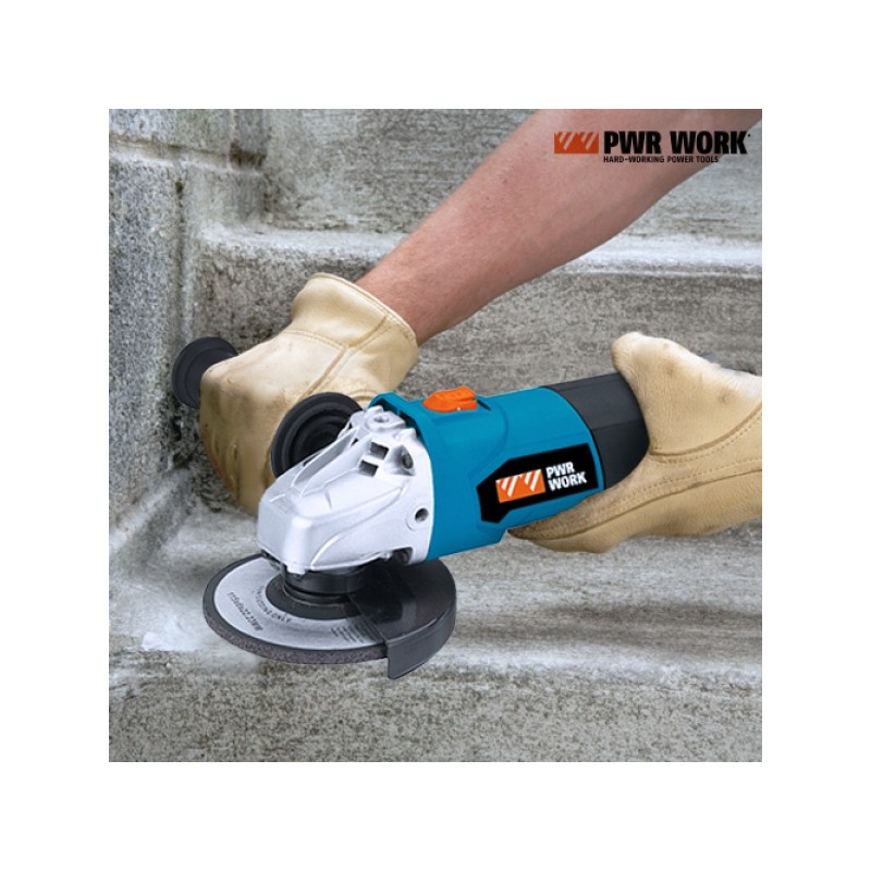 La smerigliatrice angolare PWR Work (dimensioni circa 32 x 10,7 x 12,2 cm per 1,564 kg) serve per molare, tagliare, sbavare o affilare diversi materiali, dalla muratura all'acciaio. Questa macchina utensile, talvolta chiamata flessibile o mola, è praticissima. Manico laterale rimovibile realizzato in gomma antiscivolo, una chiave, due molle e manuale di istruzioni inclusi. Disco per smerigliatrice non incluso. La smerigliatrice angolare PWR Work funziona a corrente elettrica.