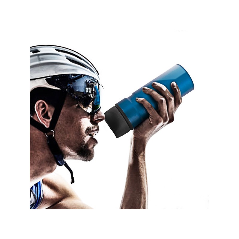 Con questa originale borraccia sport in alluminio risolvi con stile il problema dell'idratazione durante la pratica sportiva. Con una capacità di 750 ml, è perfetta per ogni tipo di sport (calcio, ciclismo, tennis, fitness, ecc.) e per portare sempre con sé la propria bevanda preferita. Il beccuccio in plastica è dotato di una valvola antigoccia. La borraccia per lo sport è realizzata in alluminio e in materiale plastico resistente. Dimensioni: circa 8 x 25 x 7 cm. La borraccia è disponibile in diversi colori, selezionati in modo casuale in base alla disponibilità.