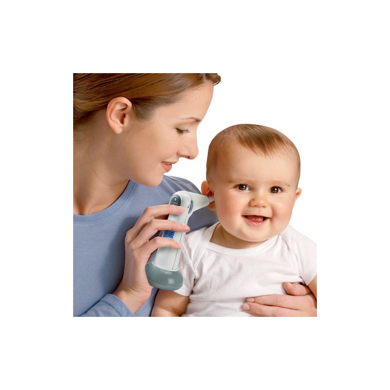 Dimenticati del disagio e della lentezza dei termometri classici e scopri il fantastico termometro auricolare a infrarossi TopCom TH4655! Questo termometro è stato specificatamente progettato per i neonati (puoi anche misurare la temperatura del latte, del cibo, dell'acqua del bagnetto o della temperatura della stanza). Include un supporto e possiede 9 spazi di memoria. Puoi utilizzarlo per misurare in ºC o ºF. Misure: circa 4 x 13 x 5,5 cm. Funziona a batteria (1 x CR2032, incluse).