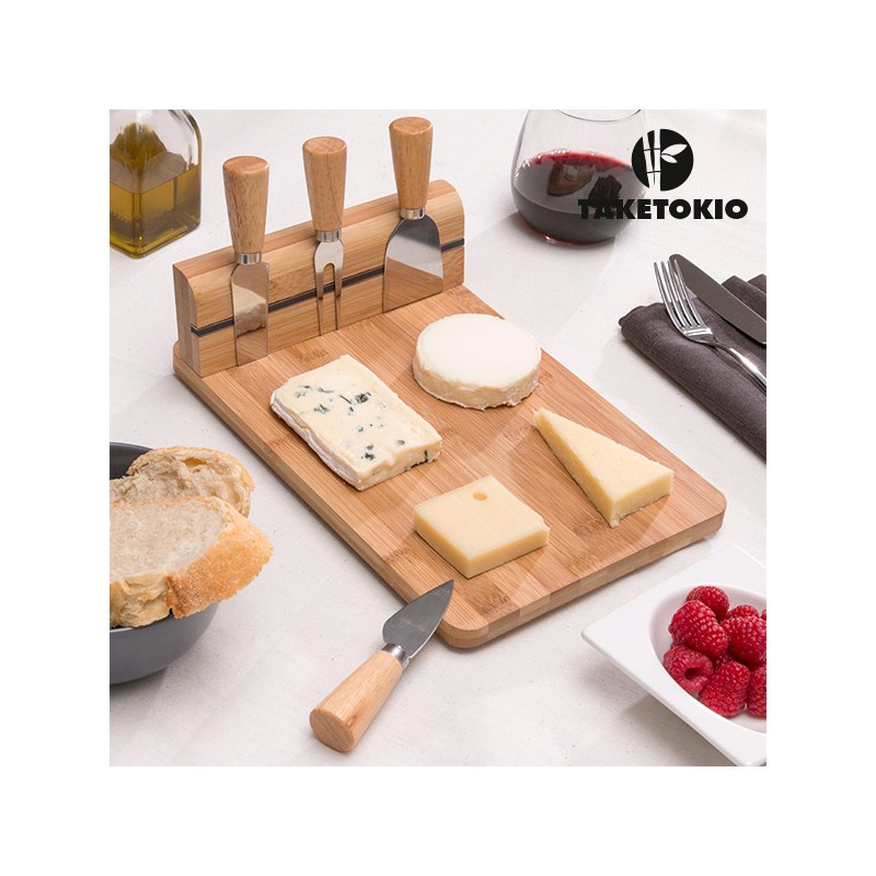 Prova ora il Tagliere di Bamboo per formaggi con Accessori (5 pezzi)! Lo amerai! Il set include 1 tagliere per formaggi con piedini anti-scivolo e un vano magnetico per riporre i 4 coltellini. Ogni coltello ha una forma differete. Il tagliere (approssimativamente 29,7 x 19,9 x 8,5 cm) e i manici dei coltelli sono in legno resistente di Bambù ed eco-sostenibile e le lame dei coltelli di acciaio inossidabile.