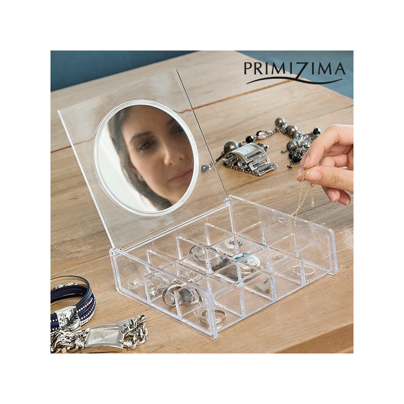 Con l'elegante e pratico portagioie trasparente con specchio Primizima potraiconservare e mettere in ordine i tuoi gioielli e bigiotteria! Ideale per anelli, orecchini e altri gioielli.