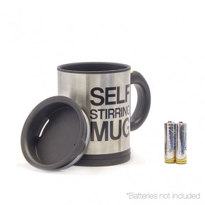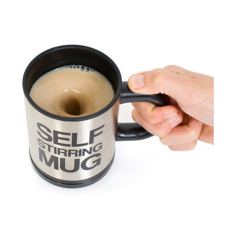 Dimenticati dei cucchiaini con l'incredibile tazza self-stirring mug! Basta premere il pulsante sul manico e il piccolo motore della tazza mescolerà la tua bevanda facilmente e rapidamente. È così facile e semplice. Sorprendi tutti con questo originale e pratico tazza in acciaio inox e plastica nera. È il regalo perfetto. La tazza è fantastica per il tè, latte, caffè, ecc Ha una capacità di circa 350ml e comprende un coperchio con un buco per bere (molto utile per i vostri viaggi).