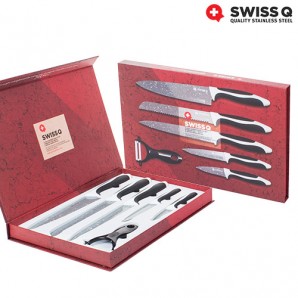 Questo magnifico set di coltelli è composto di 5 coltelli in acciaio inox con rivestimento pietra di qualità superiore e impugnatura antiscivolo, più pelapatate in omaggio. Sono coltelli resistenti, molto pratici e con un design elegante, che vi permetteranno di effettuare tagli con totale precisione e sicurezza. I coltelli rivestimento pietra Swiss Q sono molto utili e maneggevoli, il complemento perfetto per qualsiasi cucina, sia personale che professionale.