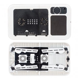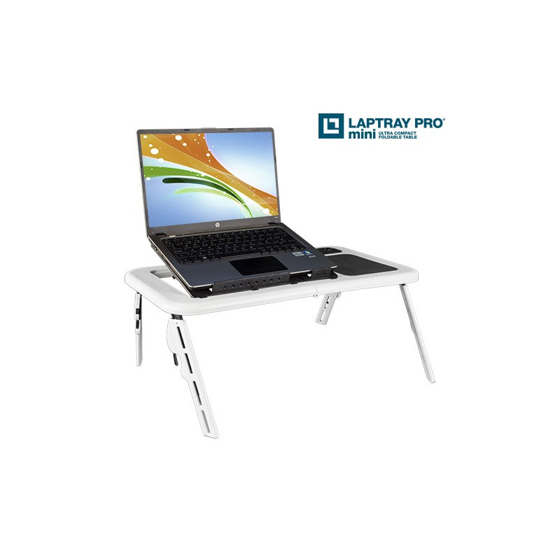 Con il tavolino per PC portatile con ventola Laptray Pro Mini utilizzare il tuo PC portatile sarà più facile e conveniente. Grazie alle sue caratteristiche, puoi utilizzarlo ogni volta e dovunque. Inoltre le sue piccole ventole inserite sulla superficie preverranno il surriscaldamento del tuo portatile. Misure della superficie: approssimativamente 56 x 32 cm. Altezza con tre posizioni: piano , 22 cm e 29 cm. Può tenere fino a 25 kg.