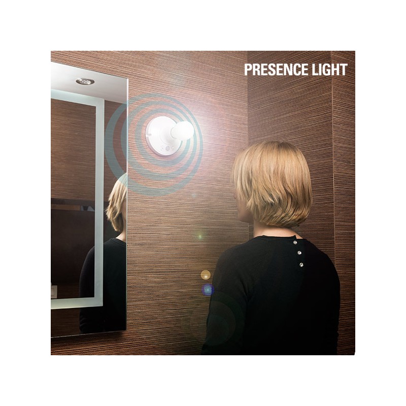 Il portalampada con sensore di movimento Presence Light è perfetto per illuminare molti spazi della tua casa! Con il rilevatore di presenza, si illumina e si spegne automaticamente al bisogno. È adatto per una lampadina standard E27. È dotato di regolatore di intensità e timer. Realizzato in plastica rigida. Dimensioni (diametro x altezza): 13 x 7 cm circa. Funziona ad elettricità. Non include lampadina, tasselli o viti per il montaggio. Esclusivamente per ambienti interni. E' possibile scegliere tra vari tipi di illuminazione: