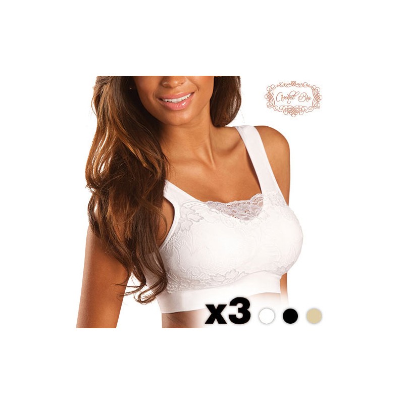 Acquista il Reggiseno Crochet (3 pezzi) al miglior prezzo. Sentiti fantastica e sexy per tutto il giorno! Dimentica i fili, fascette o spalline. Il Crochet Bra utilizza la tecnologia Woven Everlast per un comfort massimo. Questi reggiseni sono stati elaborati senza tutti quegli elementi in modo da essere usato comodamente dimenticando che lo stai indossando. Questo reggiseno si adatta al tuo seno, sollevandolo e sostenendolo. Il Crochet Bra si adatta perfettamente al tuo corpo e forma , senza lasciare segni o pieghe. In più è morbido, flessibile e molto comodo, e si adatta ad ogni coppa, sollevando il tio seno in modo significativo.