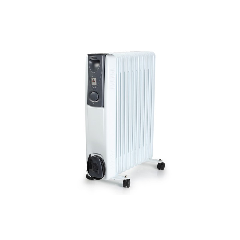 Proteggi casa tua dal freddo con questo potente radiatore a olio Tristar KA5115! Questo radiatore elettrico di qualità presenta 11 alette, un manico integrato e 4 ruote. Ha il termostato regolabile con 3 impostazioni di calore e la funzione di auto spegnimento una volta raggiunta la giusta temperatura. Misure approssimative: 46 x 62 x 24 cm. Peso approssimativo: 9,5 kg. Caratteristiche: